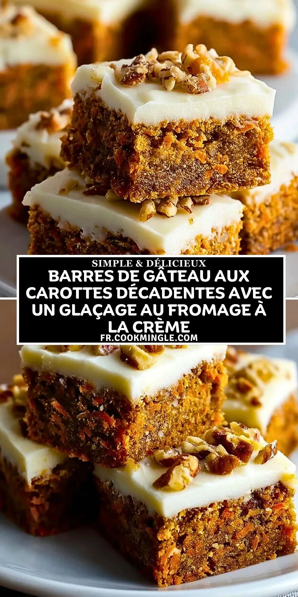 Épinglez ces barres de gâteau aux carottes décadentes avec un glaçage au fromage à la crème