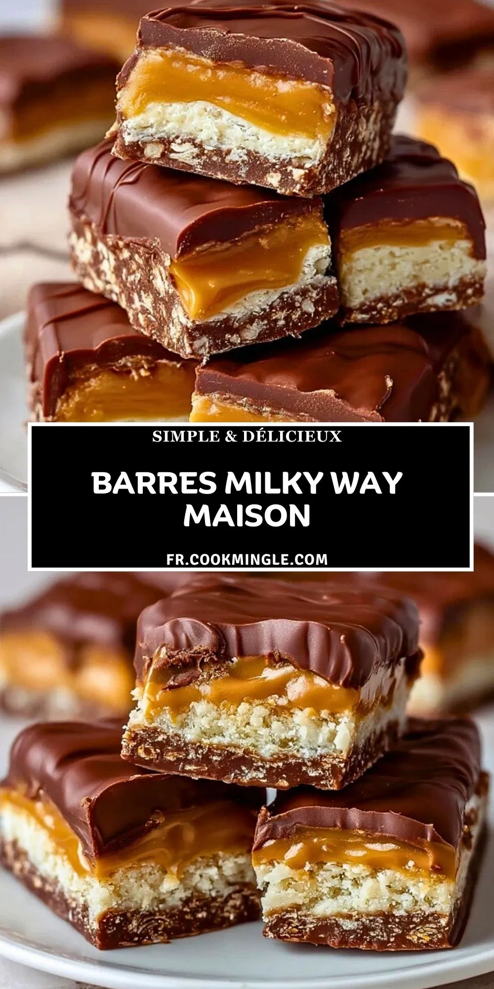 Servez ces Barres Milky Way Maison légèrement fraîches pour profiter d’un caramel fondant et d’un chocolat net sous la dent. Elles sont délicieuses au moment du café, pour le goûter ou sur un buffet de desserts. Pour la conservation, placez-les dans une boîte hermétique en séparant les couches avec du papier cuisson. Gardez-les au réfrigérateur jusqu’à une semaine, puis laissez-les revenir quelques minutes à température ambiante avant dégustation pour retrouver une texture idéale.