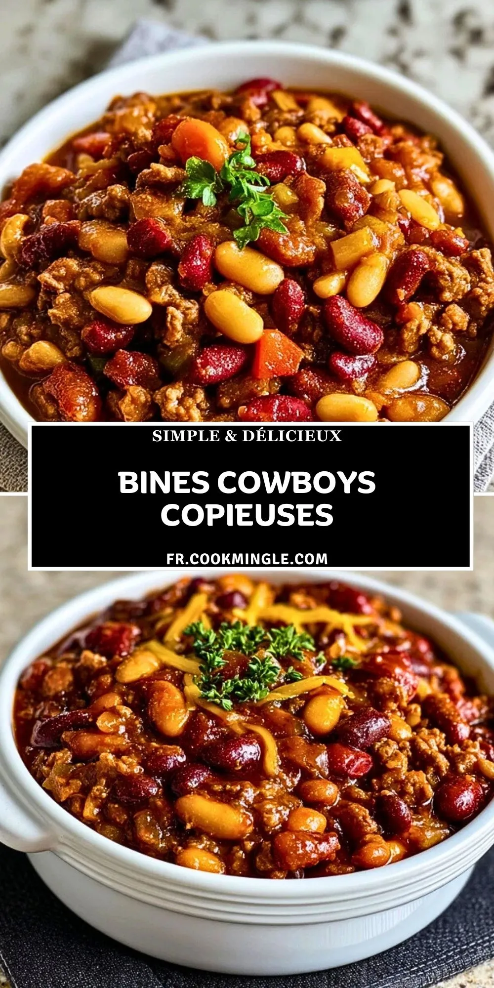 Les bines cowboys copieuses sont un plat rustique et généreux, parfait pour réchauffer les grandes tablées. Inspirées des recettes traditionnelles nord-américaines, elles marient différentes variétés de haricots à une sauce tomate richement parfumée et à de la viande savoureuse mijotée lentement.