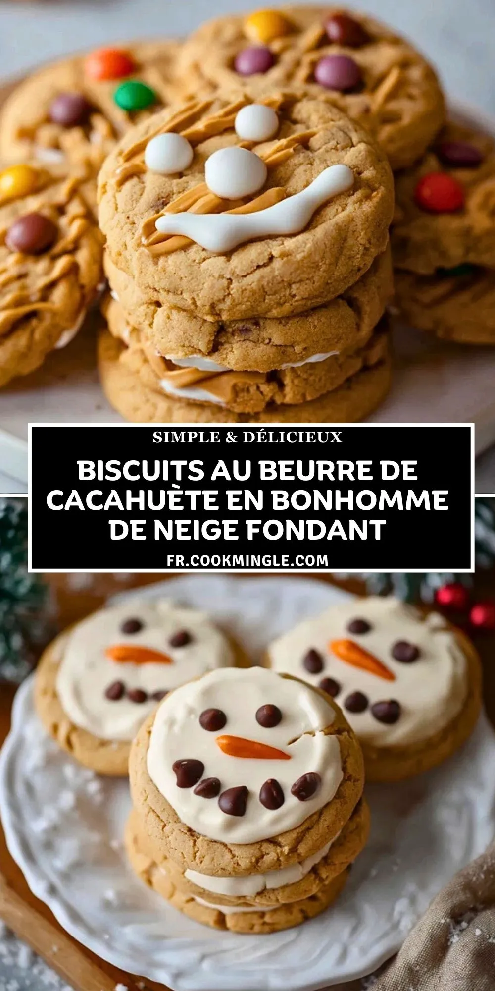 Des biscuits moelleux au beurre de cacahuète, décorés comme des bonhommes de neige fondants. Parfaits pour l’hiver, à préparer en famille, et à personnaliser selon votre imagination. Idéal pour un atelier pâtisserie ludique et gourmand !
