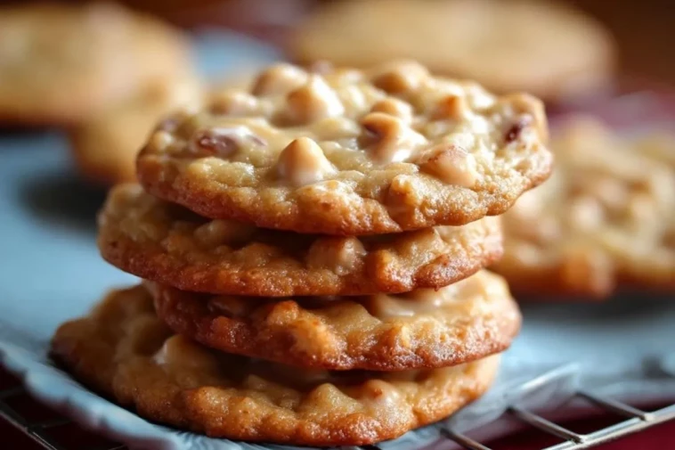 Ces Biscuits Dandy sont de fins cookies dorés aux noix de pécan et pépites de chocolat blanc, à la fois croustillants sur les bords et délicieusement moelleux au centre.