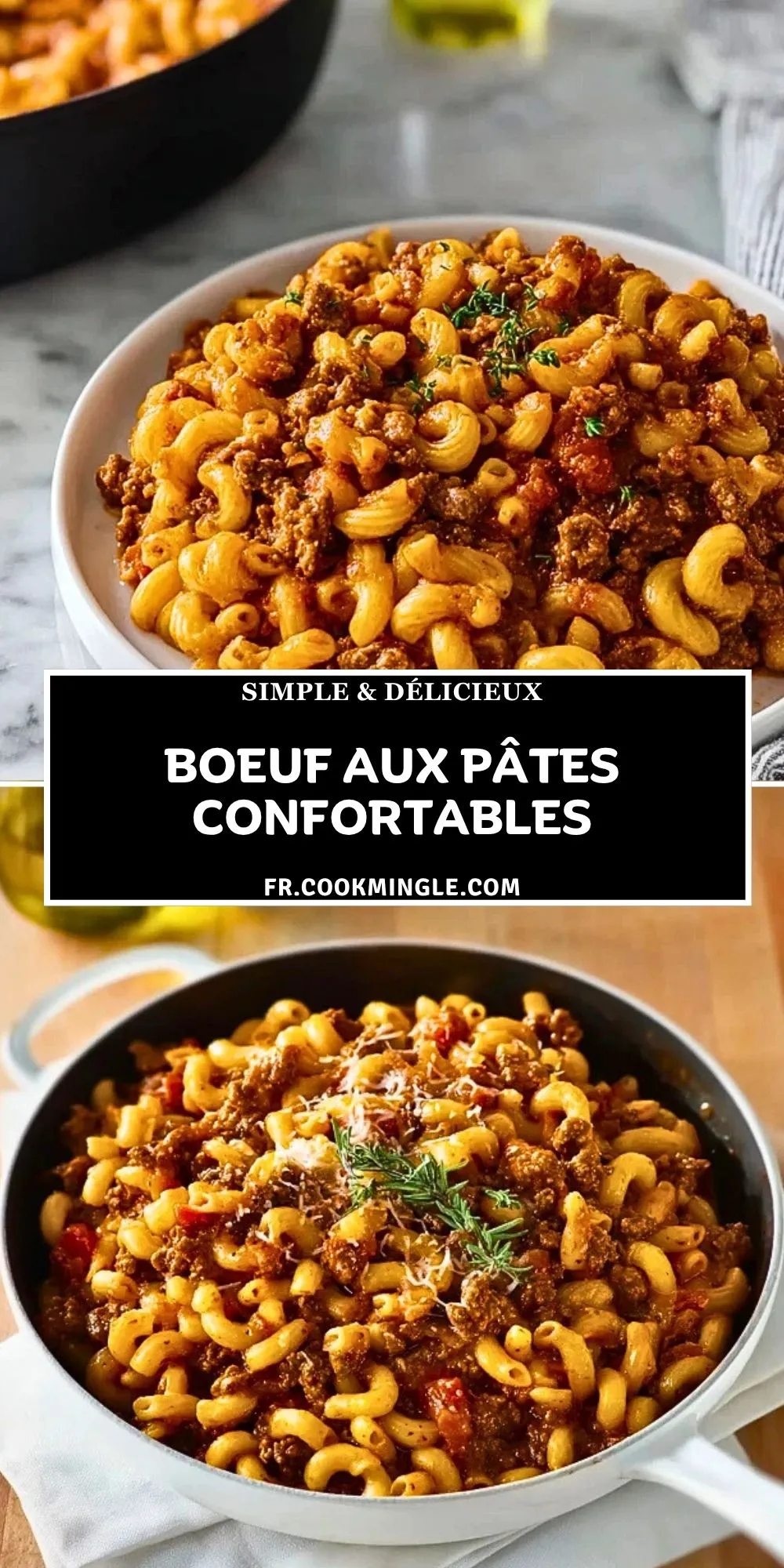 Keywords: bœuf aux pâtes confortables, pâtes au bœuf, pâtes à la sauce tomate, plat familial, dîner réconfortant