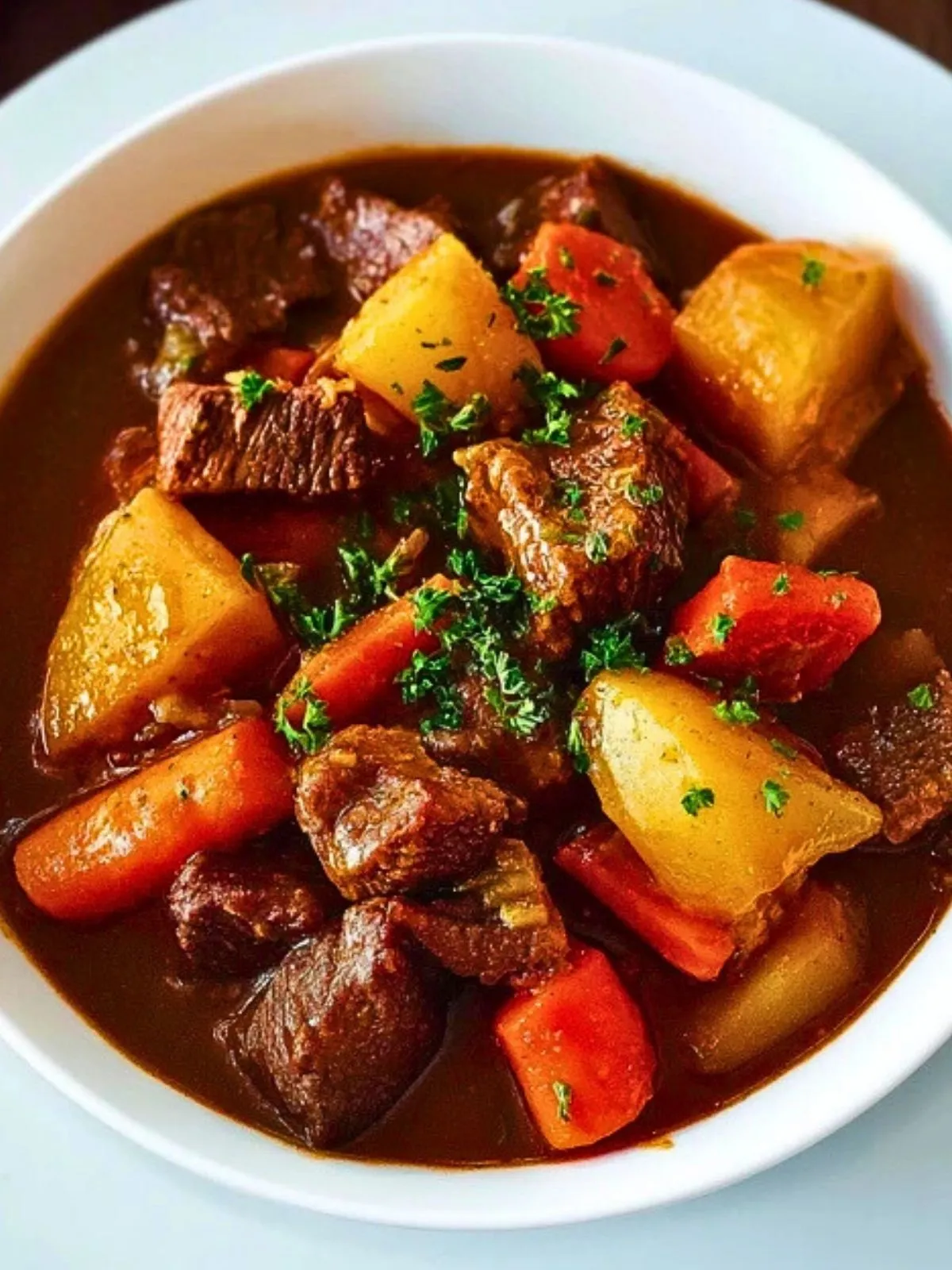 Un plat mijoté traditionnel de la cuisine française, à base de morceaux de bœuf fondants cuits lentement dans une sauce au vin rouge, avec des carottes, champignons, oignons et lardons. Parfait pour les repas conviviaux en famille ou entre amis.