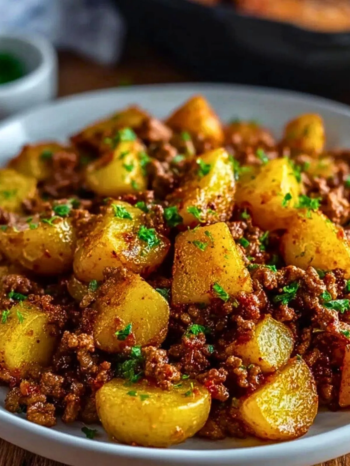 Le Bœuf Haché aux Pommes de Terre est un plat familial simple et savoureux, préparé à la poêle avec des ingrédients du quotidien. La viande dorée s’associe à des pommes de terre fondantes et légèrement croustillantes pour un repas complet, rapide et réconfortant.