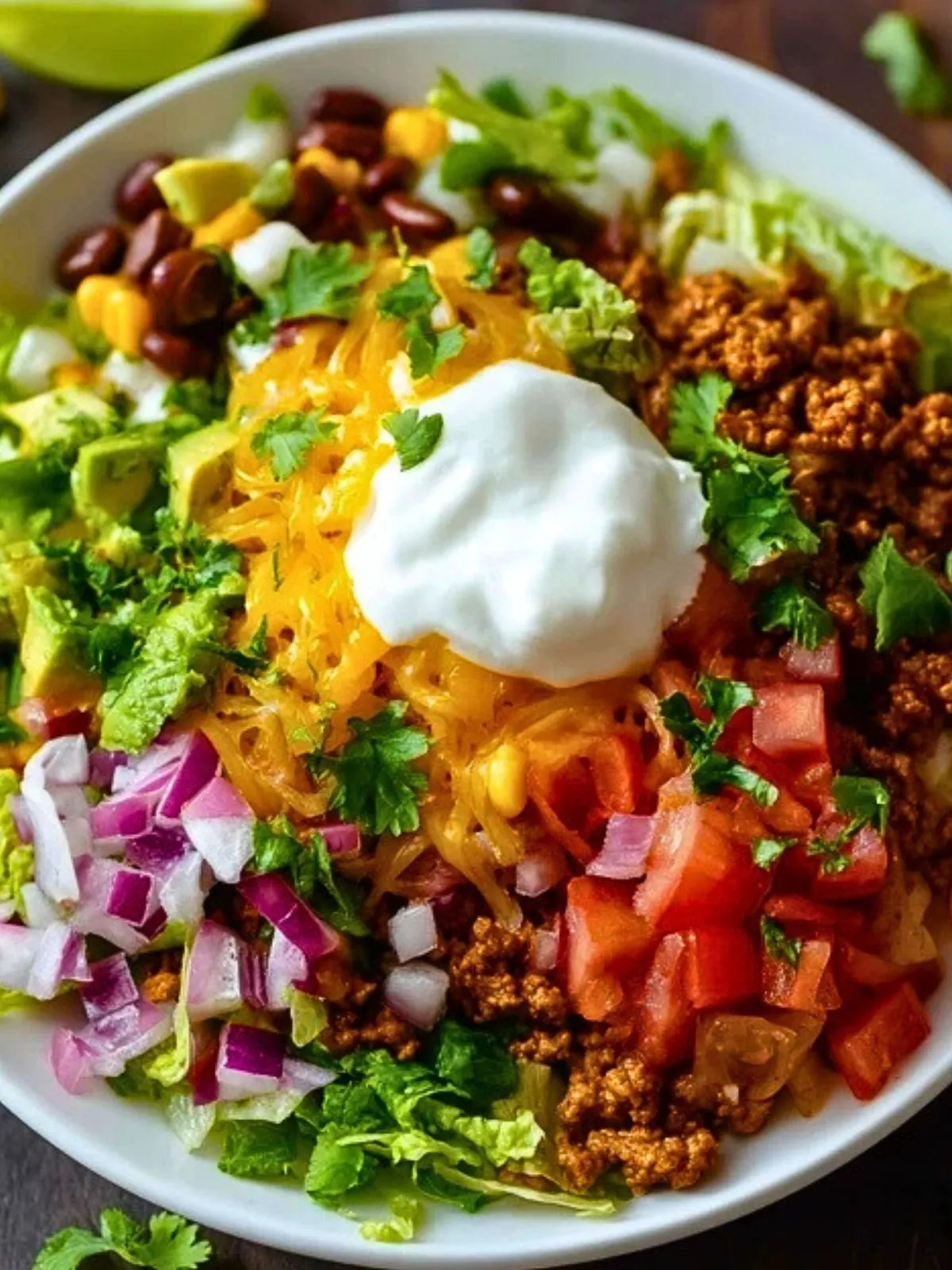 Le Bol de Tacos Rapide et Facile est un plat complet, coloré et personnalisable, réunissant bœuf assaisonné, riz moelleux, légumes frais et garnitures gourmandes. Idéal pour un repas rapide en semaine, il offre un parfait équilibre entre textures et saveurs.