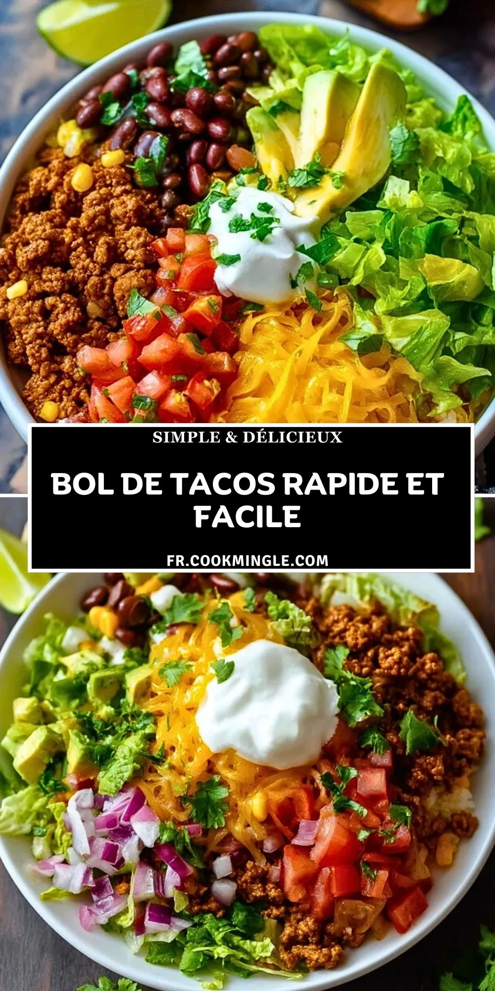 Épinglez le Bol de Tacos Rapide et Facile sur votre tableau Pinterest dédié aux repas rapides pour le retrouver facilement.