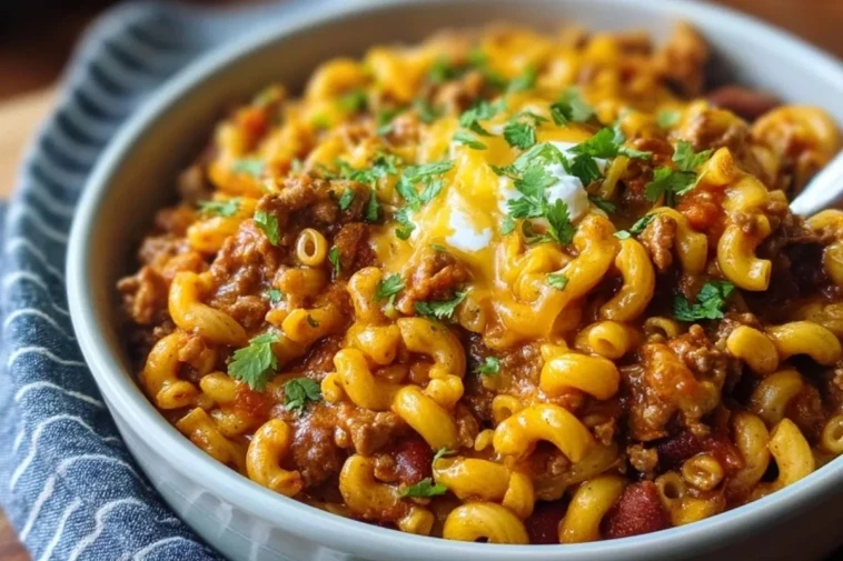 Imaginez un bol fumant de chili bien épicé qui rencontre un macaroni au fromage ultra crémeux… le tout cuisiné dans une seule casserole, sans vaisselle compliquée. Ce chili macaroni au fromage en une seule casserole est le plat familial par excellence : généreux, parfumé, réconfortant et prêt en moins d’une heure.