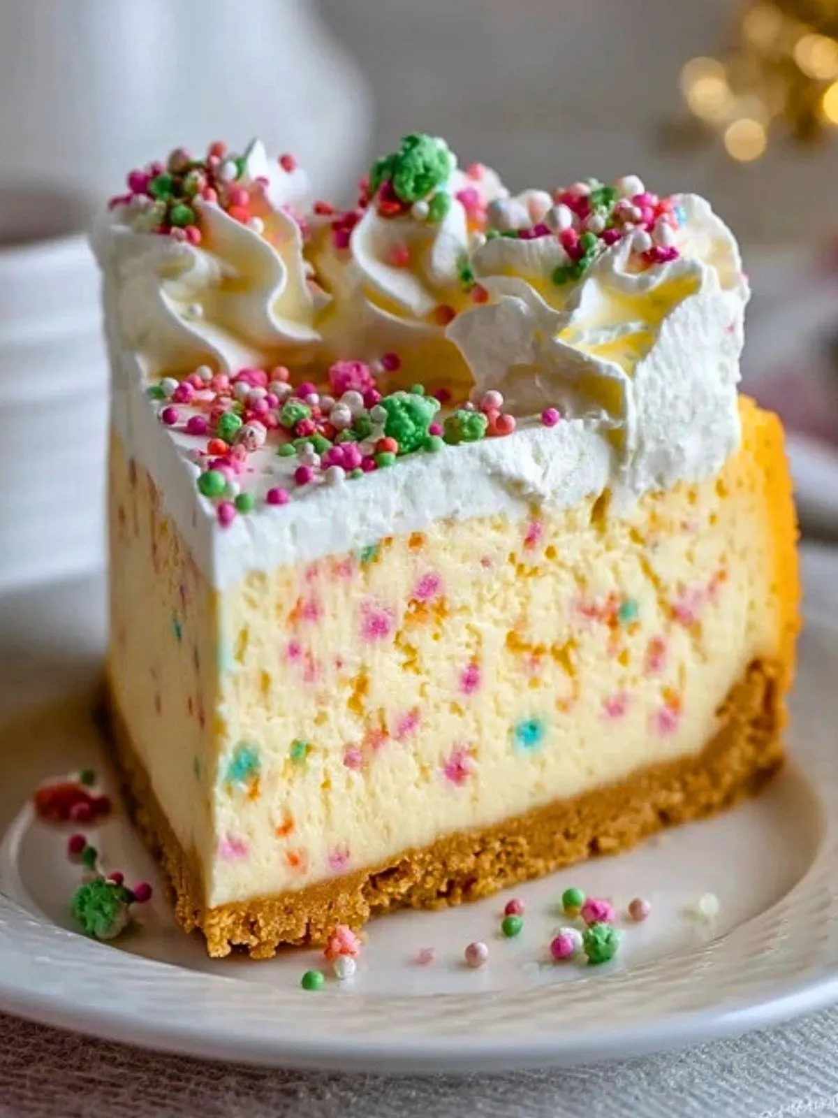 La magie de ce dessert réside dans l’ajout de biscuits sucrés multicolores directement dans la crème de fromage blanc. En plus de donner un effet visuel spectaculaire, ces petits éclats fondent légèrement à la cuisson, offrant une note sucrée et festive à chaque tranche. C’est une véritable fête aussi bien pour les yeux que pour le palais !