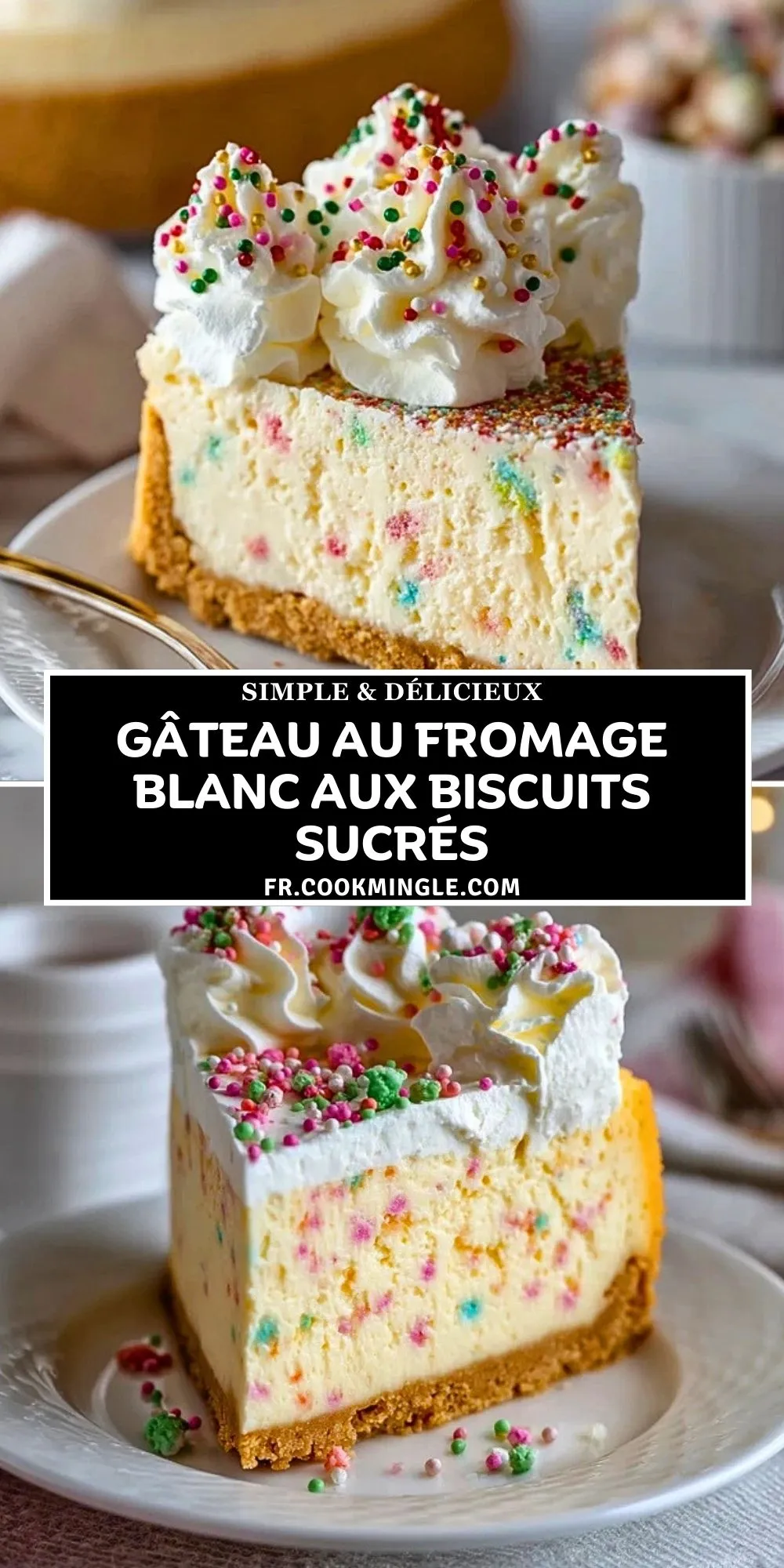 Un gâteau au fromage blanc aux biscuits sucrés, frais et coloré, parfait pour les anniversaires ou les moments festifs. Sa base biscuitée croquante et sa crème légère au fromage blanc, parsemée de confettis colorés, séduiront petits et grands à chaque part !