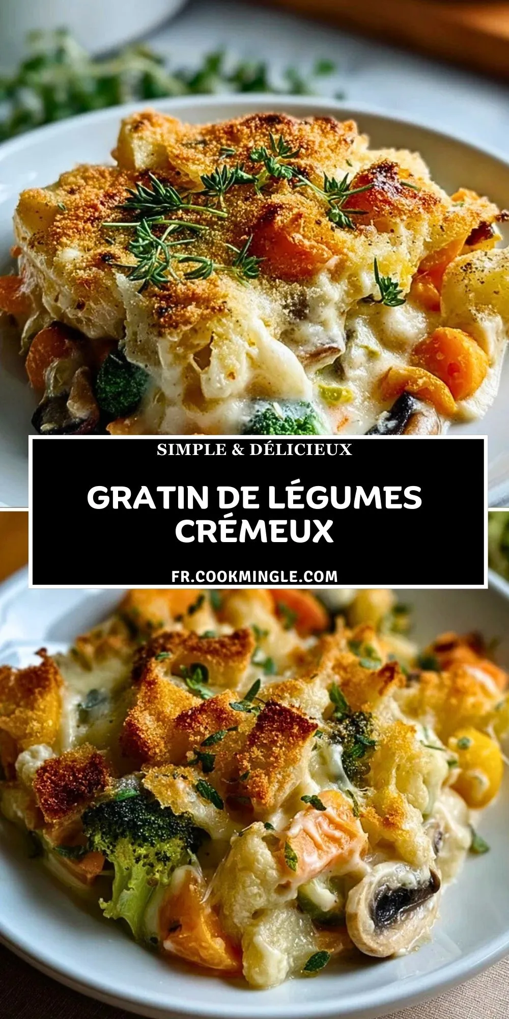 Épinglez ce gratin de légumes crémeux sur votre tableau Pinterest “Plats familiaux” ou “Recettes réconfortantes” pour le retrouver facilement quand une envie de cuisine cocooning se fait sentir.