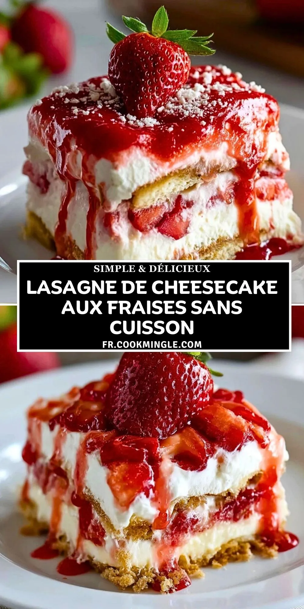 Keywords: lasagne de cheesecake aux fraises sans cuisson, dessert aux fraises, cheesecake sans cuisson, dessert d’été, dessert facile