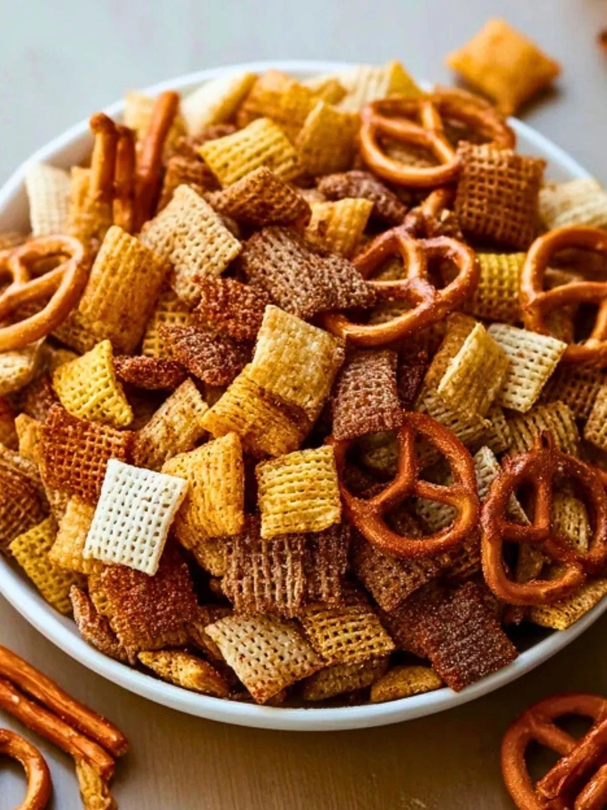Le mélange churros est un snack sucré croustillant inspiré des célèbres beignets espagnols roulés dans le sucre à la cannelle. Au lieu de pâte frite, on utilise un assortiment de céréales, de bretzels et de petits biscuits, que l’on enrobe d’un mélange au beurre fondu, sucre, cassonade, cannelle et vanille avant de le faire légèrement griller au four. On obtient ainsi un grignotage à la fois croquant, parfumé et très addictif, parfait pour remplacer les chips ou les biscuits industriels.