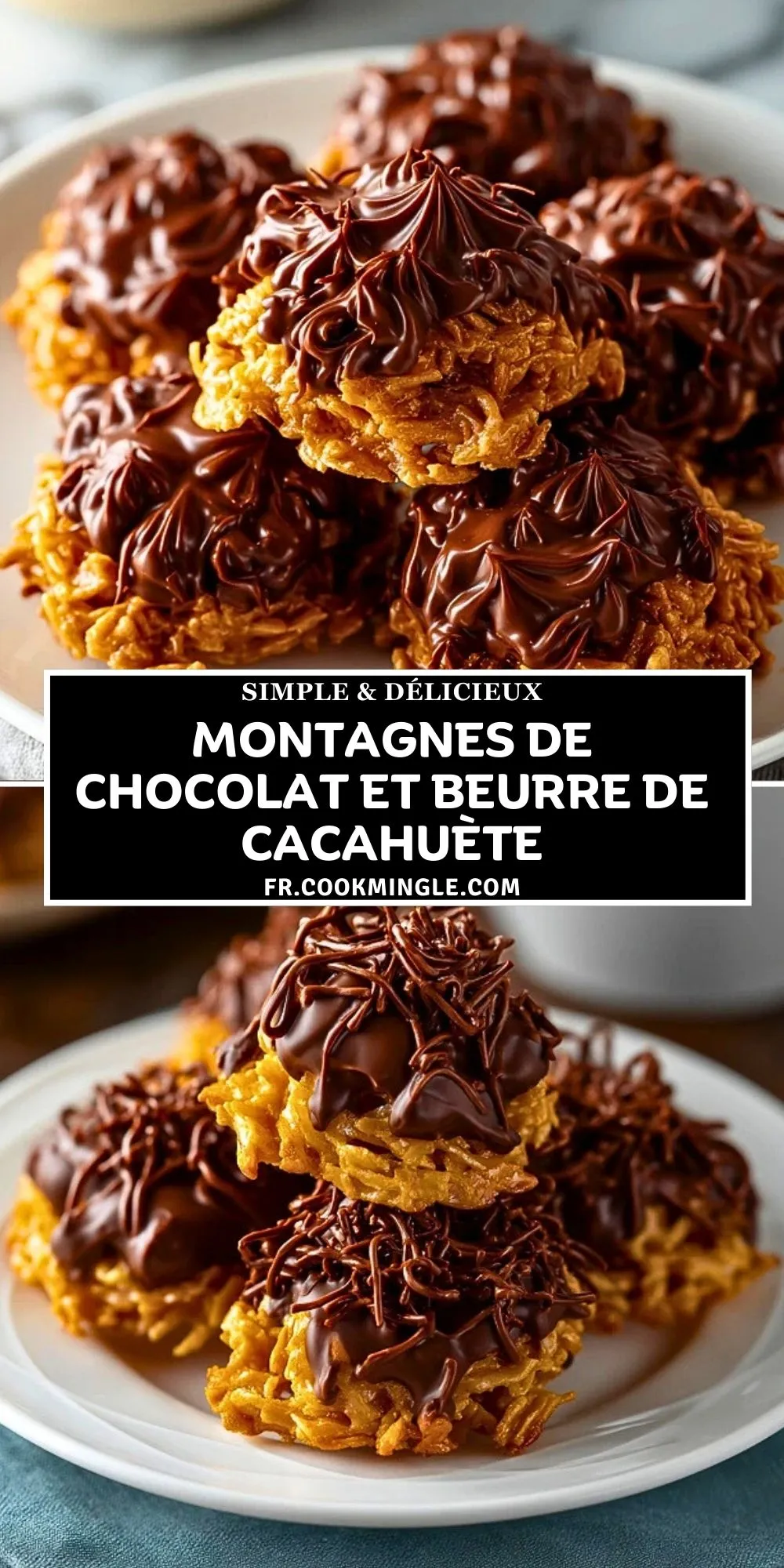 Keywords: montagnes de chocolat, beurre de cacahuète, sans cuisson, biscuits croustillants, gourmandises