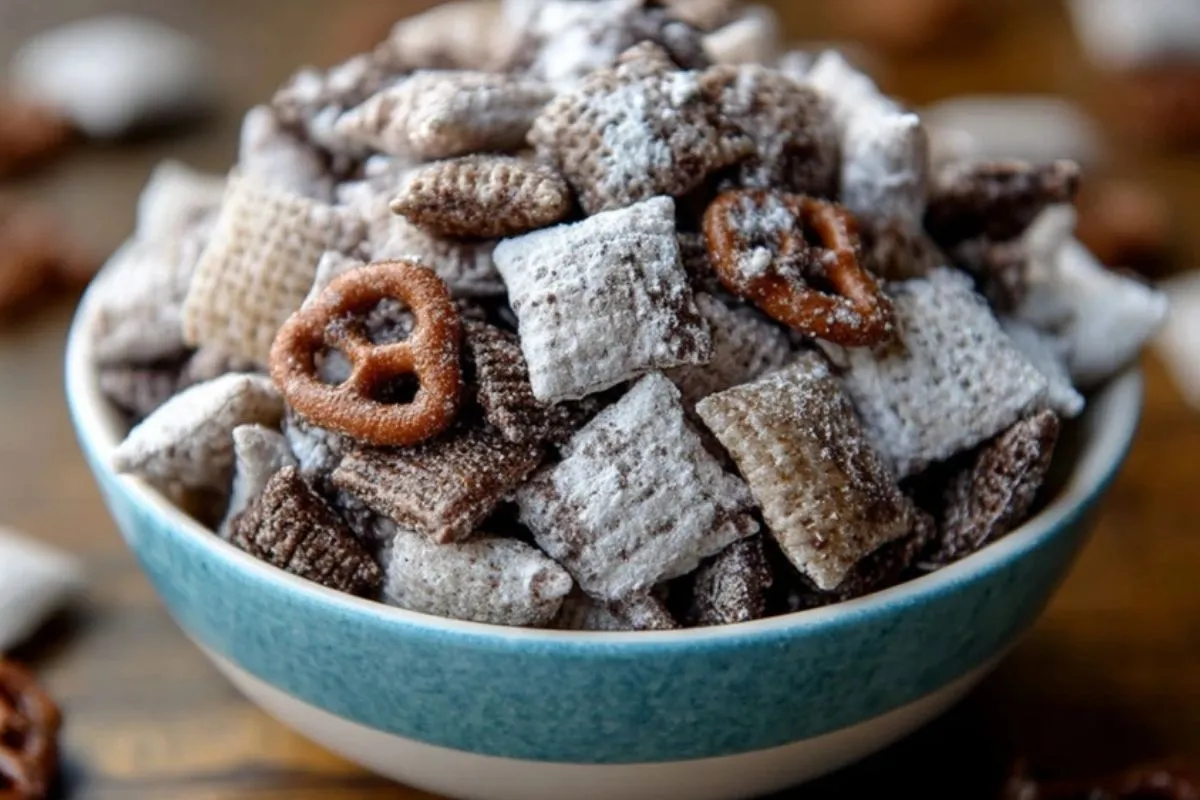 Keywords: muddy buddies, céréales chocolatées, snack sucré, mélange croustillant