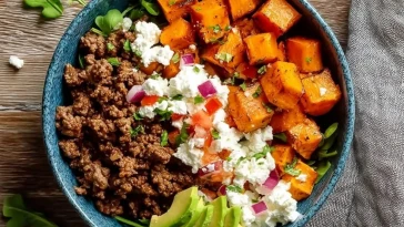 Bols de viande hachée de bœuf, patate douce et fromage cottage