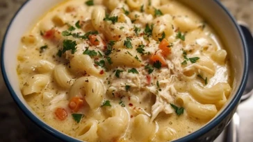 Soupe crémeuse au poulet et macaroni