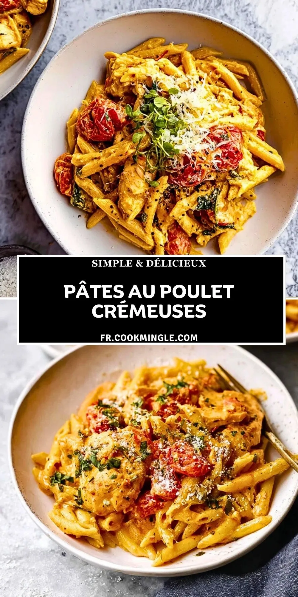 Keywords: pâtes crémeuses, poulet, sauce au parmesan, dîner rapide