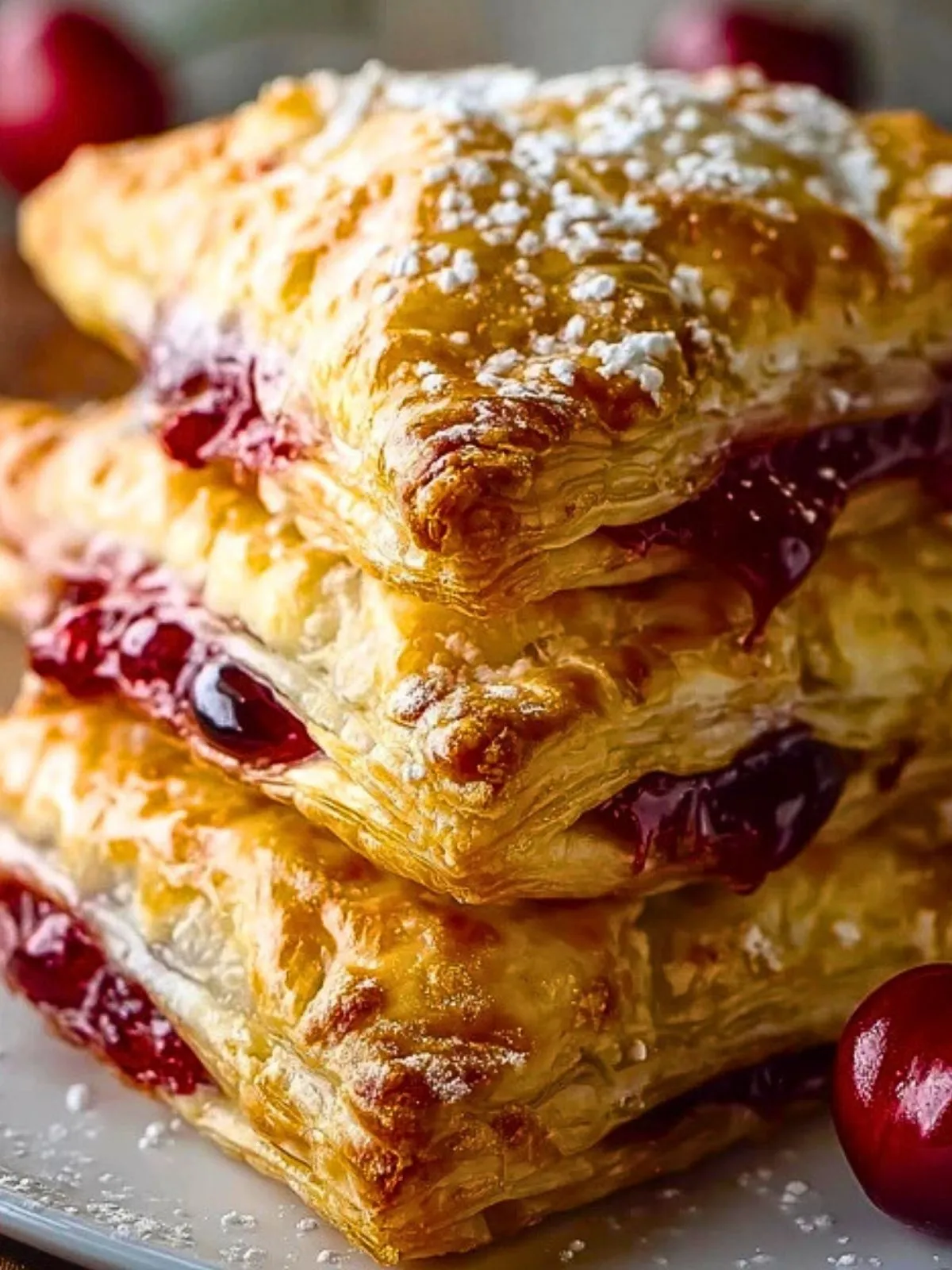 De délicieuses pâtisseries feuilletées, dorées et croustillantes, garnies d’une compotée de cerises légèrement acidulée. Parfaites pour un goûter, un dessert express ou un brunch gourmand !
