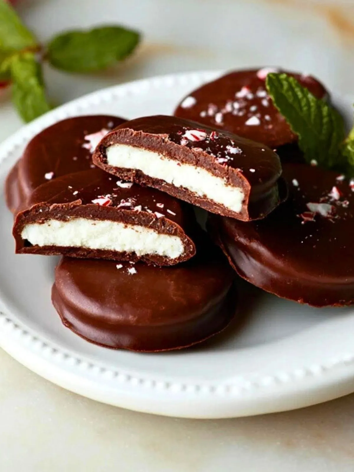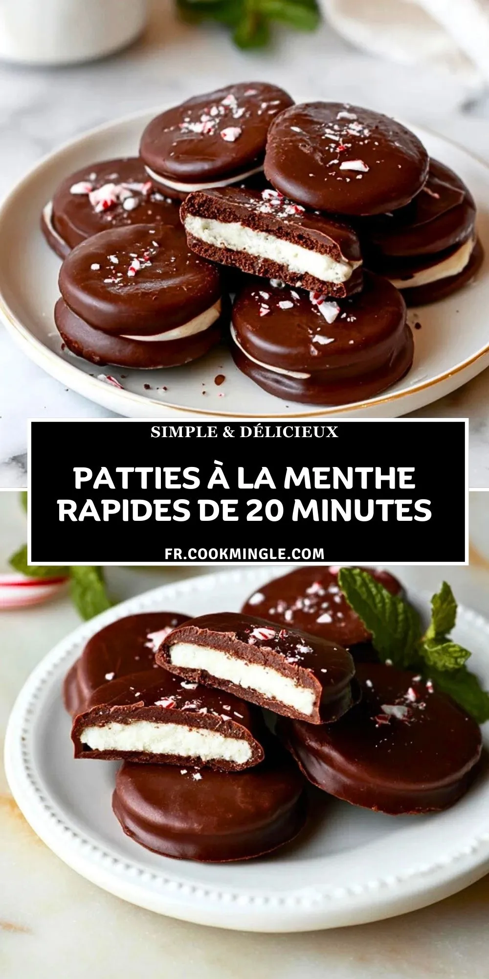 Leur texture contraste entre un chocolat croquant et un intérieur moelleux à la menthe : c’est ce duo qui crée la magie. De plus, ils sont ultra-rapides à préparer, personnalisables (on peut même les décorer de sucre d’orge ou de feuilles de menthe fraîche) et bien meilleurs que les versions industrielles. L’alliance chocolat-menthe plaît à toutes les générations.