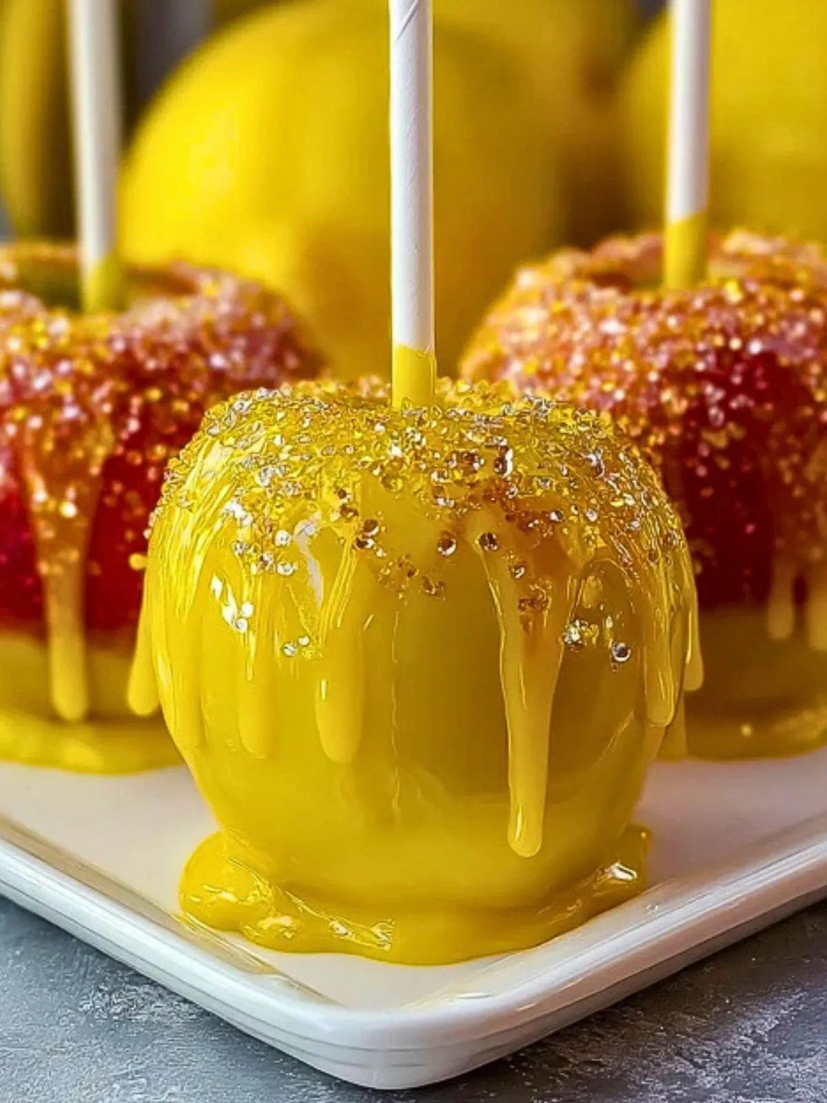 Des pommes d’amour revisitées, enrobées d’un glaçage croquant parfumé à l’ananas et au citron. Parfaites pour épater lors d’une fête, d’un anniversaire ou pour retrouver le plaisir des gourmandises de fête foraine en version exotique ! Leur coque dorée et acidulée est une invitation à croquer.