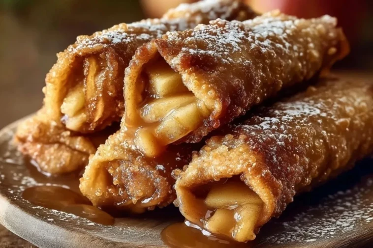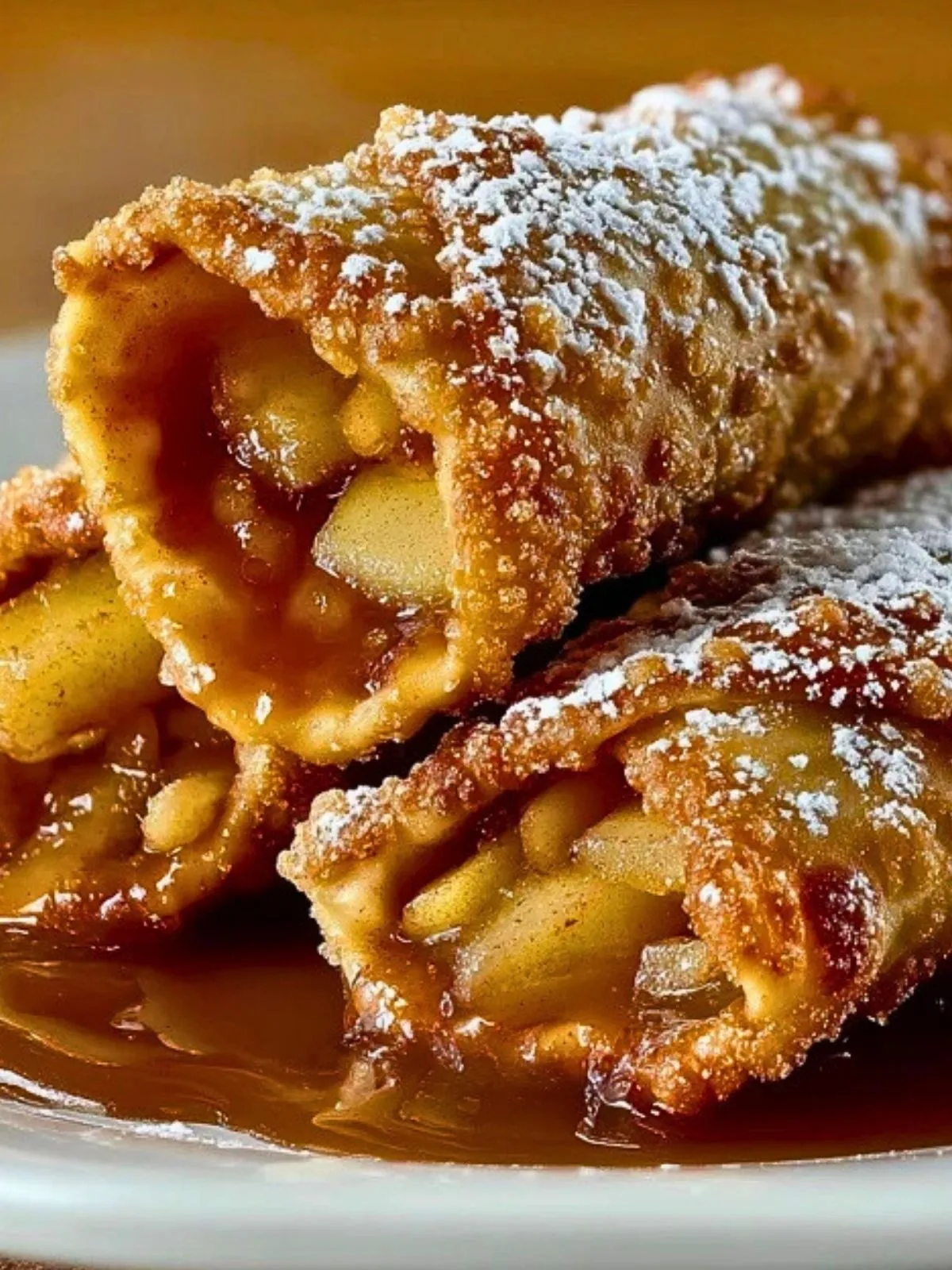 Des roulés aux pommes dorés, ultra croustillants à l’extérieur et fondants à l’intérieur, garnis de pommes caramélisées à la cannelle. À savourer tièdes, saupoudrés de sucre glace, pour un goûter réconfortant ou un dessert convivial et facile.