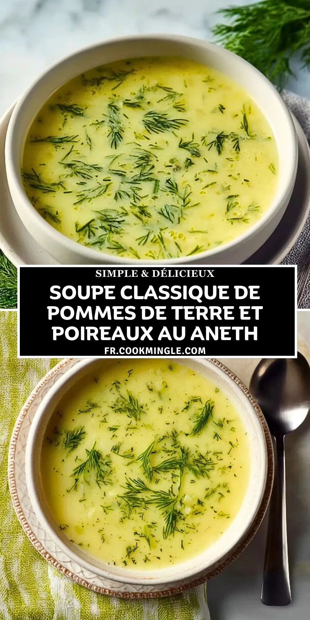 Keywords: soupe pommes de terre poireaux, soupe à l’aneth, soupe maison, velouté poireaux, soupe réconfortante