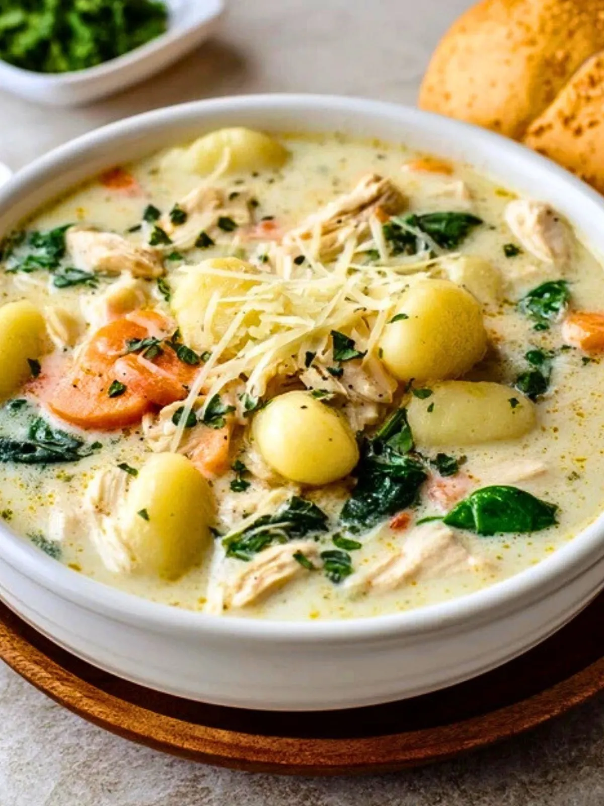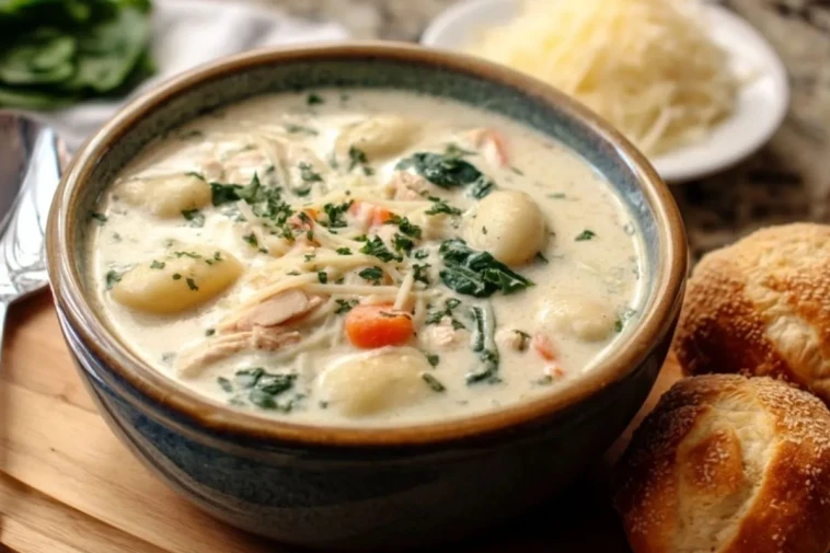 Cette soupe gnocchi au poulet est un plat complet, crémeux et réconfortant, préparé avec du poulet tendre, des gnocchi moelleux, des légumes fondants et un bouillon onctueux au parmesan. Facile à réaliser et parfaite pour les journées fraîches, elle offre une texture généreuse et un goût doux qui en font un repas familial particulièrement apprécié.